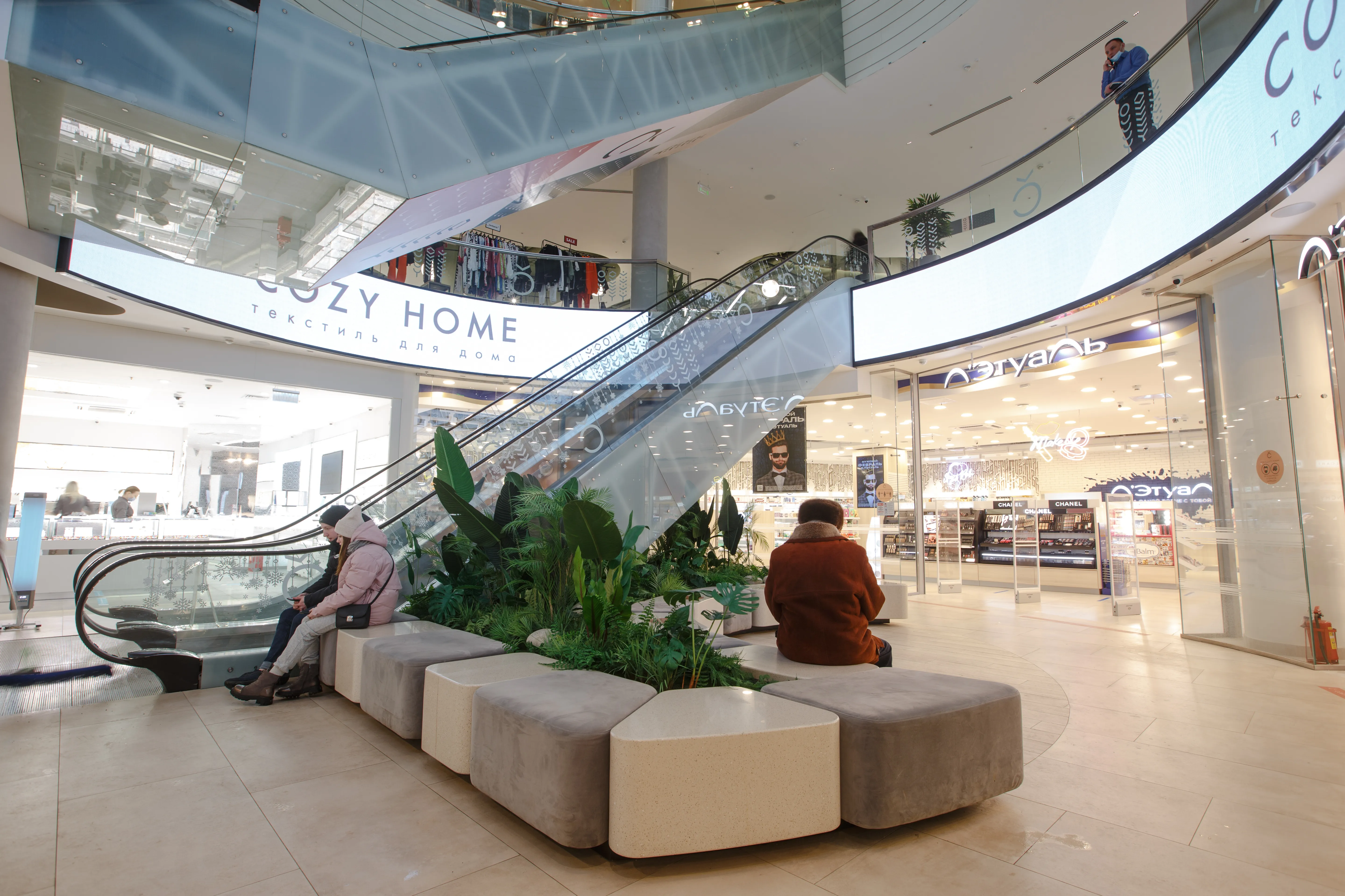 В 2021 прошел полную реконцепцию и сегодня на трех этажах торгового центра гармонично сочетаются пространства кафе и ресторанов, универмаг российских дизайнеров и супермаркет, магазины парфюмерии и косметики, книжный, зоотовары, пункты бытовых услуг, комфортные welcome-зоны для встреч и отдыха.